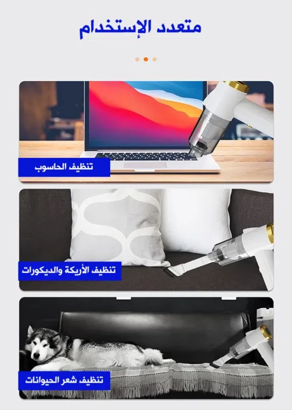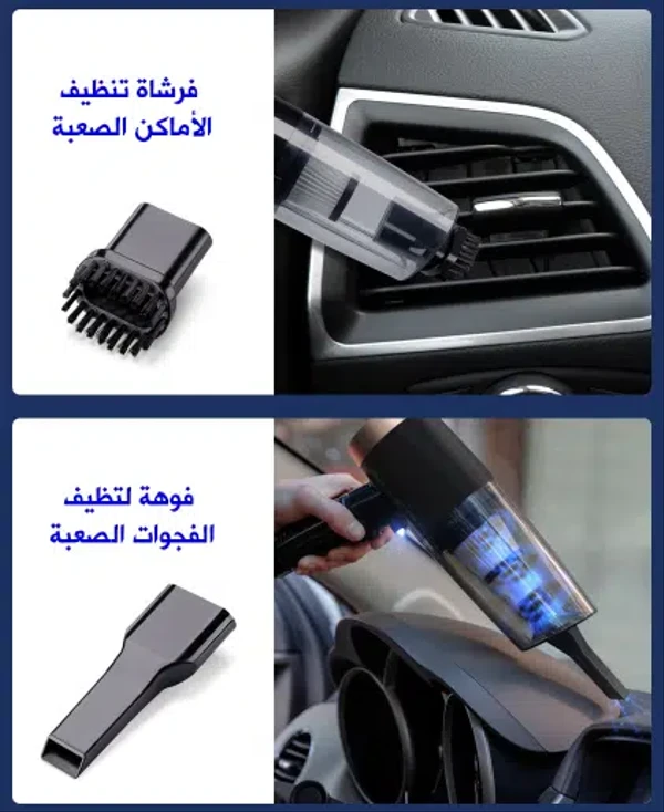 مجهزة بفلتر مصمم بجودة ومتانة، يعمل بقوة شفط سريعة للتخلص من أي فضلات أو أترب متراكمة على فرش السيارة.